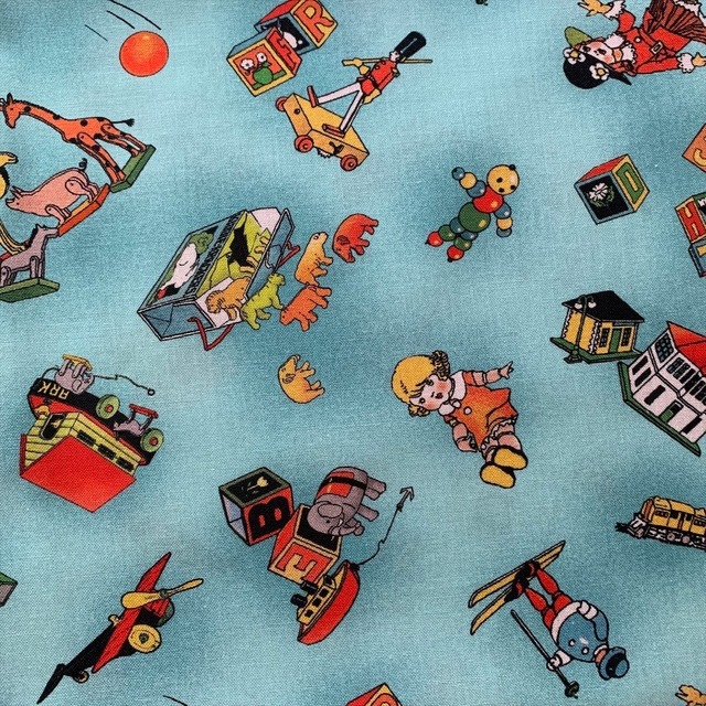 Michael Millerの可愛いおもちゃ柄 お子様にはもちろん、地色のぼかしが、何処となくアンティークな雰囲気 大人の方にもおすすめです 1.0m単位でのカット販売となります。 生地巾 約110㎝ 長さ 1.0m 綿 100% シーチング ※送料について 2mまでは、ネコポス発送が可能です。3m以上の場合は、ヤマト宅急便となります。恐れ入りますが、配送方法のプルダウンから、お選び下さい。