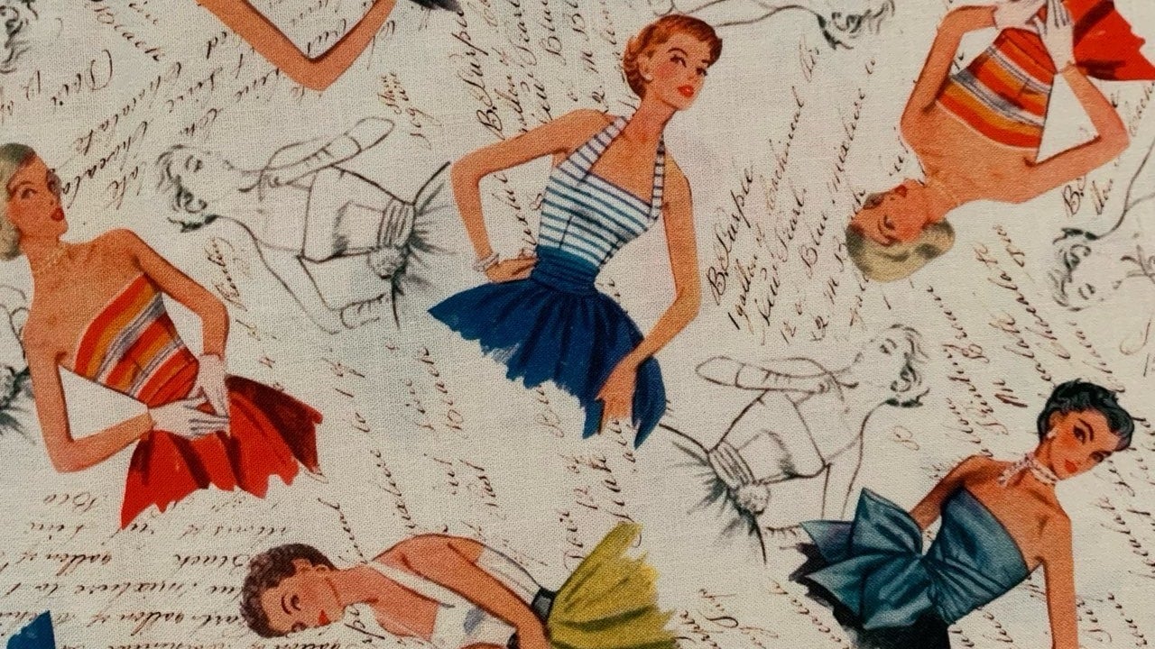 Michael Millerからエイミースチュワートデザインのデジタルプリントです。ドレスを着た美人のお姉さん達は、パターンブックの表紙のモデルさんかな? ソーイング教室のレッスンバックや、お化粧ポーチなども作れそうです。 1.0m単位での販売となります。 生地巾 約110㎝ 長さ 1.0m 綿 100% シーチング ※送料について 2mまでは、ネコポス発送が可能です。3m以上の場合は、ヤマト宅急便となります。恐れ入りますが、配送方法のプルダウンから、お選び下さい。