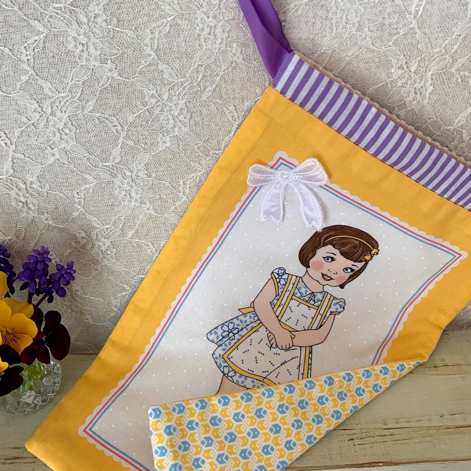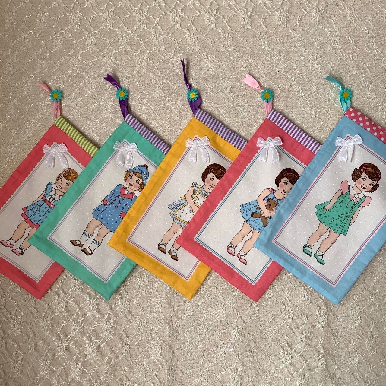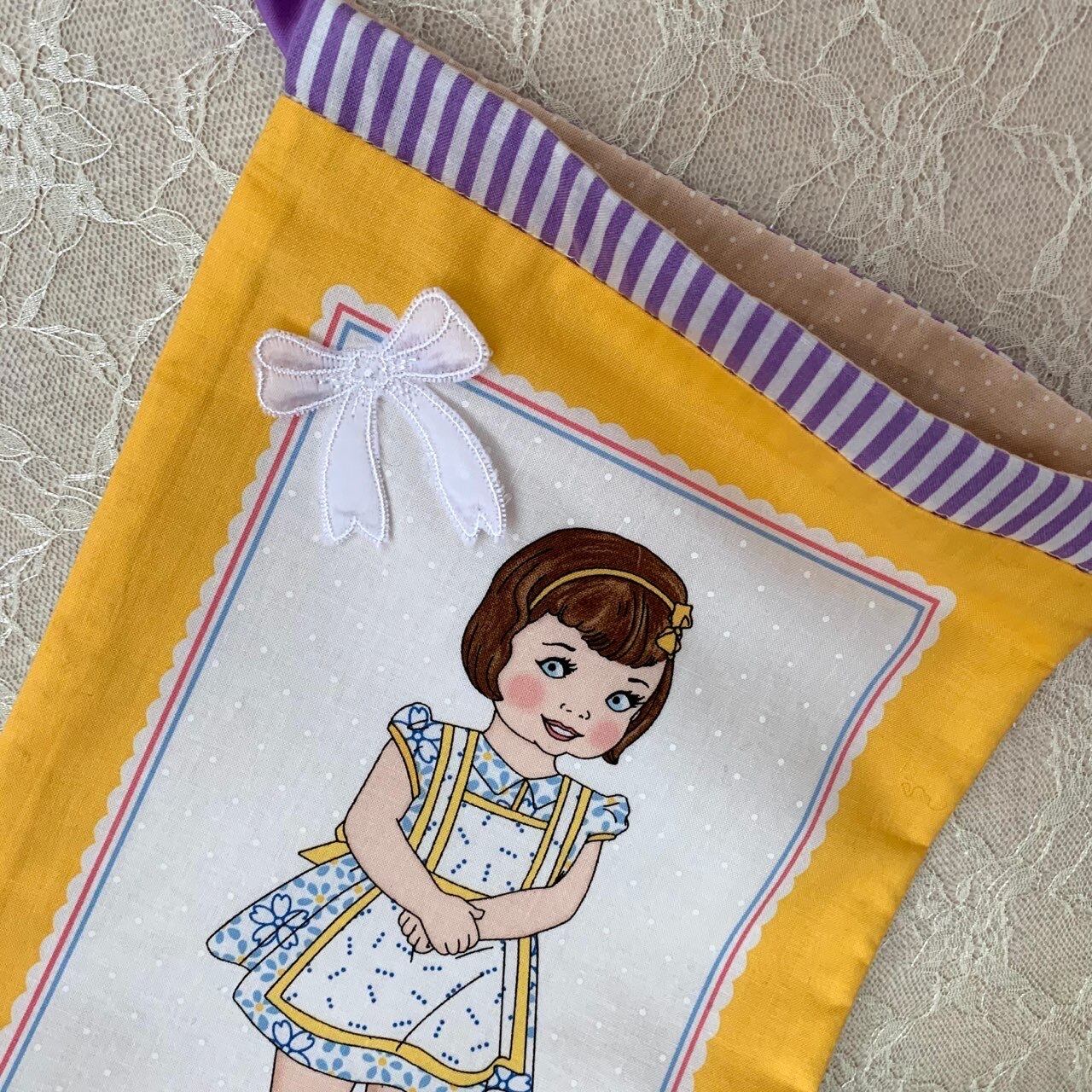 可愛い女の子柄の巾着袋を作りました。