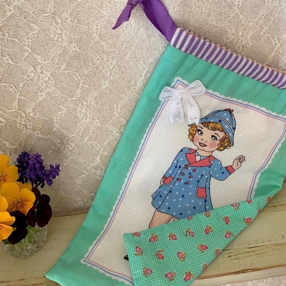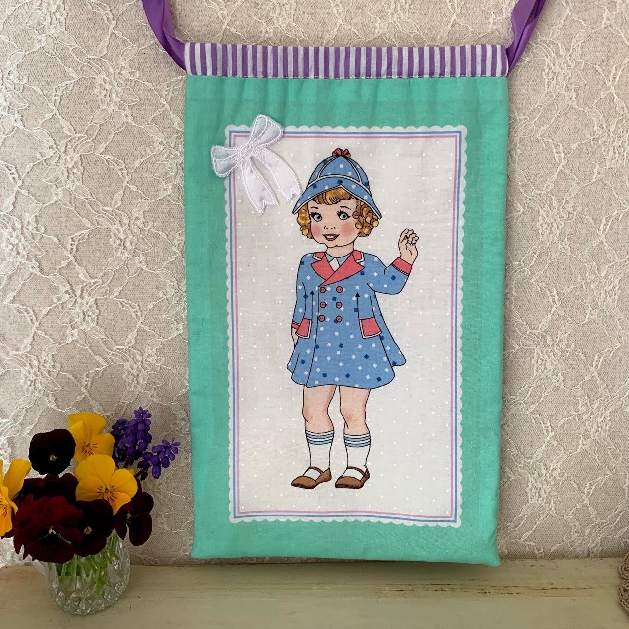 可愛い女の子柄の巾着袋を作りました。